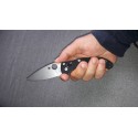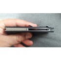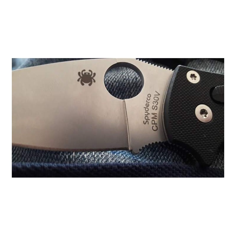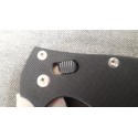 De acero CPM-S30V negro recubierto. Dispone de un clip de bolsillo de tres tornillos que se ajusta para llevar de forma ambidiestra con las puntas hacia arriba o hacia abajo. Incluye orificio para uso de emergencia. Fabricada en Golden, Colorado, EE.UU.