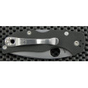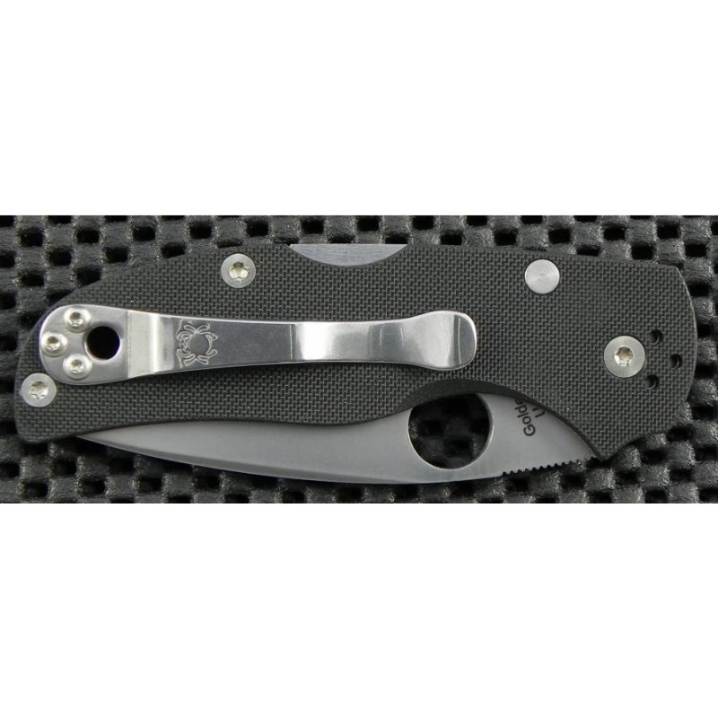 "Lleva el tipico clip que tienen la mayoría de las Spyderco, que es muy resistente e intercambiable de lado, con lo que si te encaja mejor en el bolsillo o mochila del reves, quitas unos tornillos allen y listo."