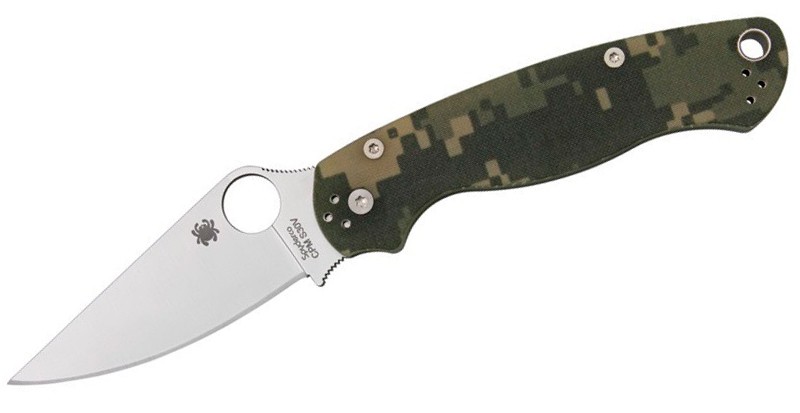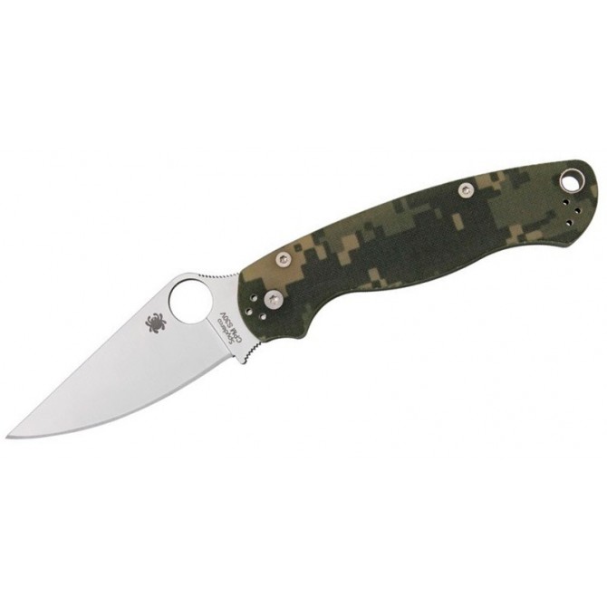 La navaja 2010 paramilitar 2 Digital camuflaje G10 tiene varios cambios respecto a la versión clásica. El mango G-10 se estrecha al final para la mejora de la ergonomía.