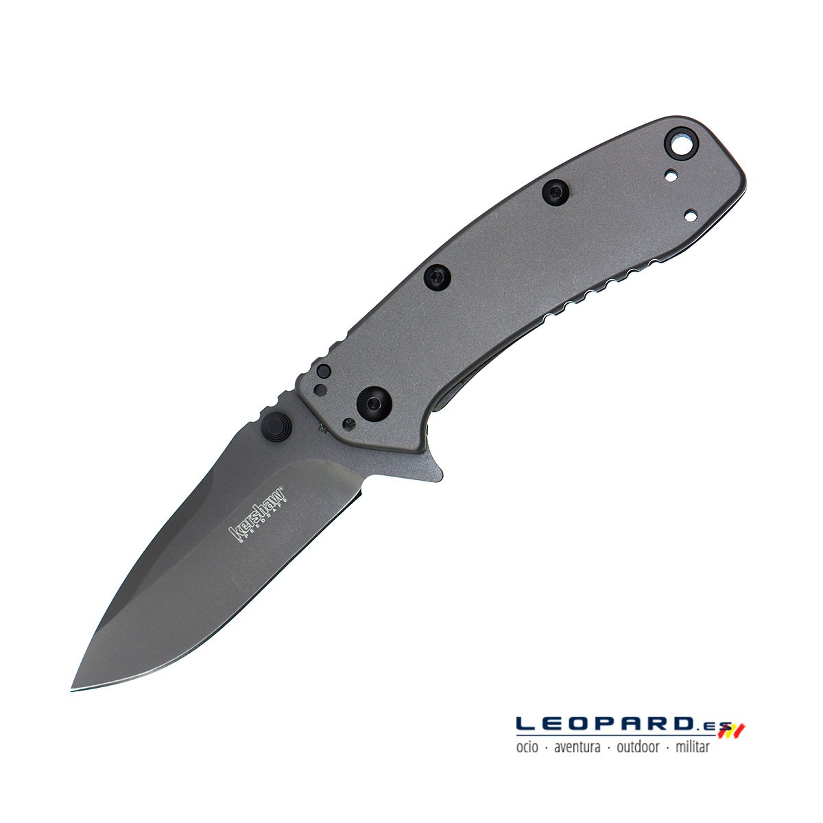 Navaja de apertura asistida diseñada por Rick Hinderer. Hoja fabricada en acero 8Cr13Mov pavonada de color gris. Cachas en acero inoxidable pavonado gris titanio. Incluye clip ambidiestro para poder portar fácil y agujero para cordón fiador.