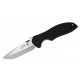 La navaja tiene una hoja tipo clip-point. La cacha de G-10 color negro texturizada mejora el agarre y la otra zona de la cacha de acero actua como seguro . El mango está preformado para adaptarse de forma segura a la mano.