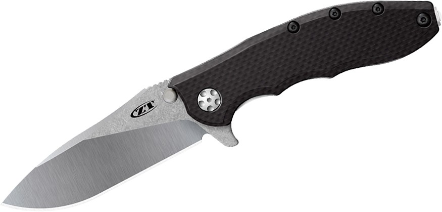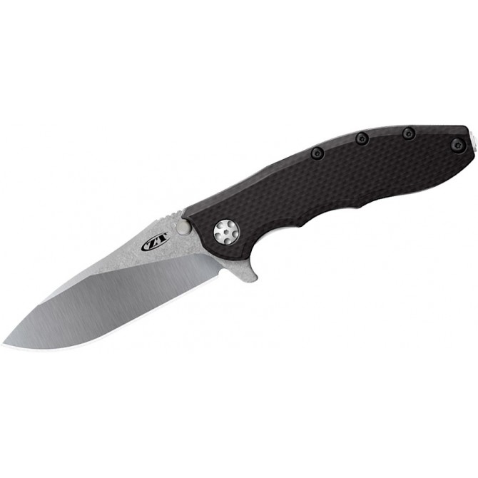 Navaja Zero Tolerance diseñada por Rick Hinderer. Hoja fabricada en acero CTS-204P parte satinada y parte acabado lavado a la piedra. Cachas fabricadas en fibra de carbono y titanio acabado lavado a la piedra. Incluye clip reversible.