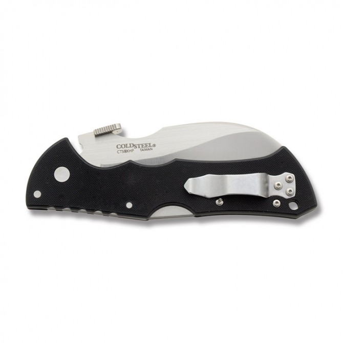Los desarrolladores de Cold Steel han escogido el acero producido por la empresa americana Crucible Industries para la fabricación de la hoja de esta navaja Talon II. Se trata de una aleación martensítica creada a partir de un proceso de pulverización denominado CPM.