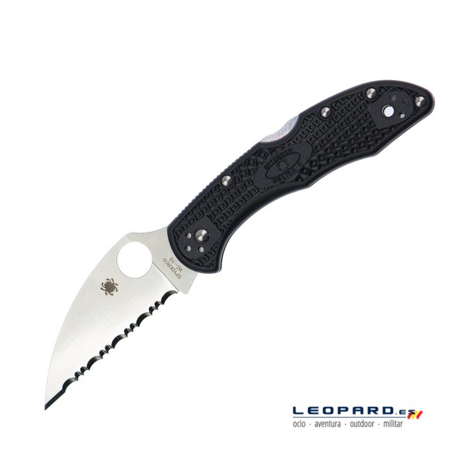 Navaja Spyderco con hoja fabricada en acero VG-10. Cachas fabricadas en FRN. Incluye agujero para cordón fiador. Incluye clip reversible ambidiestro.