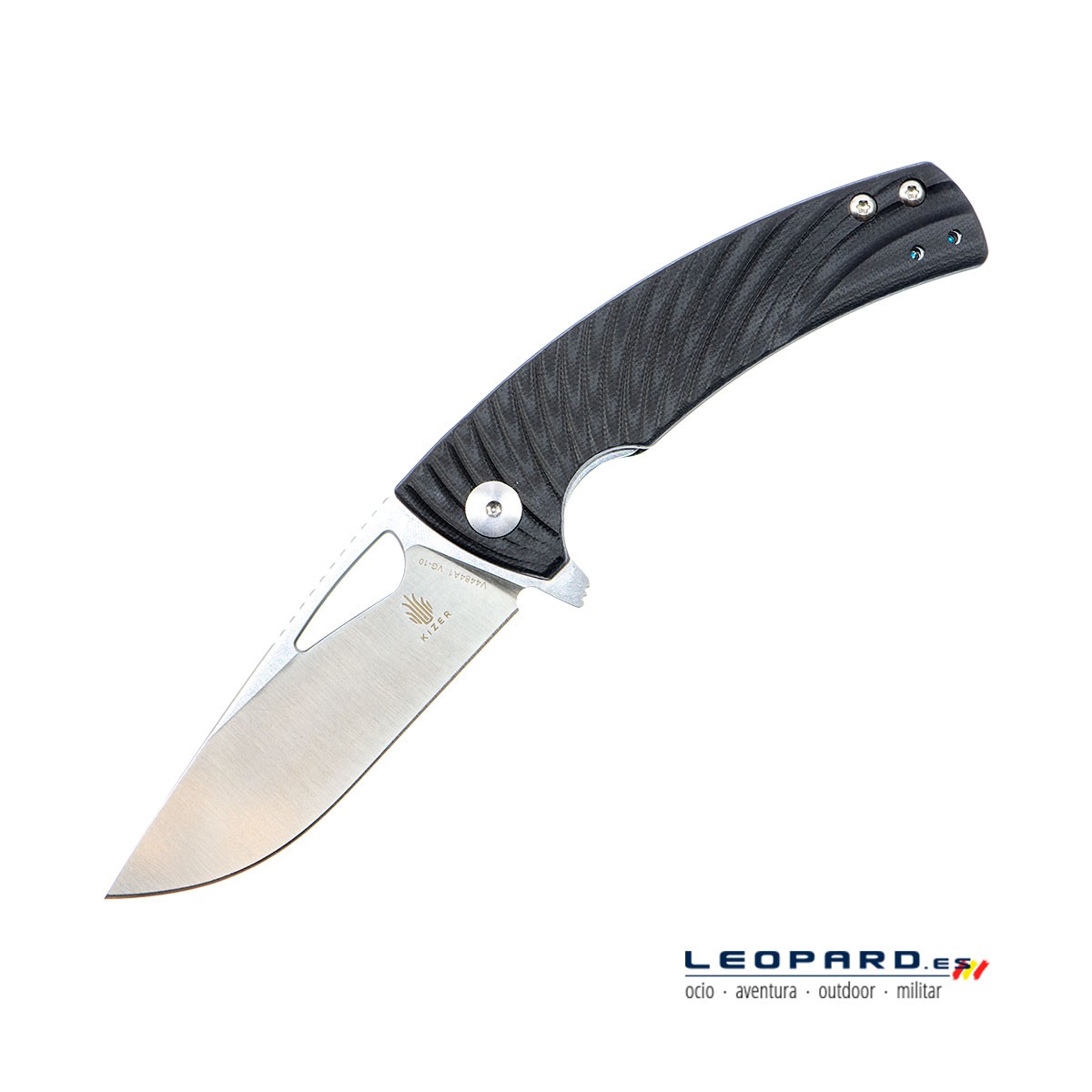 Navaja Kizer con hoja tipo drop point fabricada en acero VG10. Cachas fabricadas en G10. Incluye clip ambidiestro reversible. Apertura: Flipper. Bloqueo: Liner Lock. Es la versión vanguardista del Kyre, un modelo que está diseñado en colaboración con TK knives.