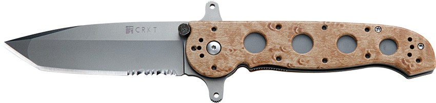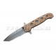 CRKT M16 Desert Tactical Series Special Forces. Partially serrated AUS-4 stainless blade.5 1/4" closed.Tanto blade with bead blast finish.Desert camo Zytel handles.Includes two clips,hardware and a Torx tool to allow four position carry.Blade features two "Carson Flippers"resulting in a true hilt.