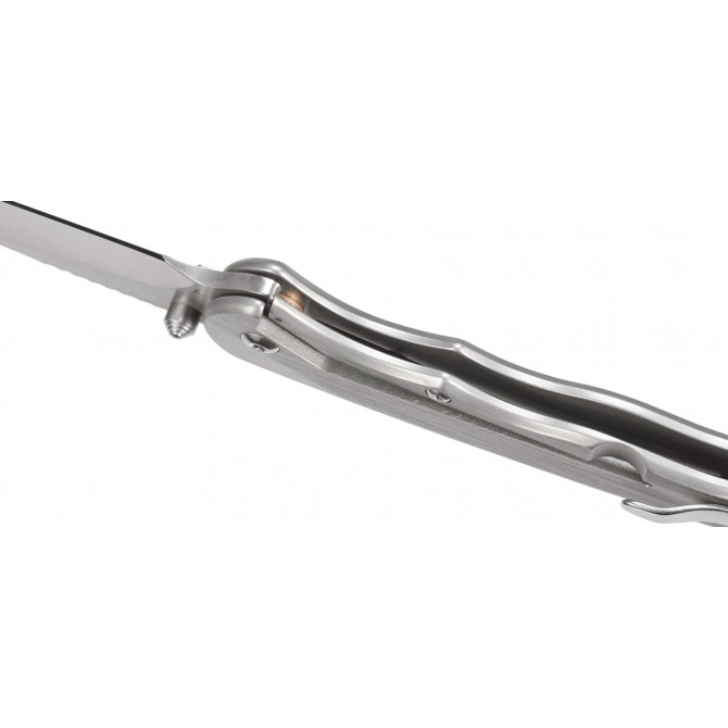 La hoja de la navaja Flat Out Framelock tiene el filo totalmente recto con un lomo que forma una curva gradual desde la punta a la empuñadura, por lo que es más segura a la hora de utilizarla , ya que previene cortes accidentales. Este tipo de hojas permiten al usuario llevar a cabo trabajos más finos, además de ofrecer al usuario un excelente control de la punta.