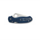 La hoja se combina con un mango ergonómico que incluye revestimientos de acero inoxidable completos, con escalas de fibra de nylon texturizadas de color azul, un agujero de cordón forrado y un clip de reloj de arena reversible que se puede configurar para llevarlo con la punta derecha o izquierda.