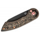 Una de las señas de identidad de la Fox FX-550CFB Radius Fibra de Carbono reside en su sistema de apertura y bloqueo. Con el pulgar, se desplaza un botón que abre la navaja y deja la hoja bloqueada. Y parra volver al estado inicial, basta con apretar de nuevo el botón y la hoja queda suelta.