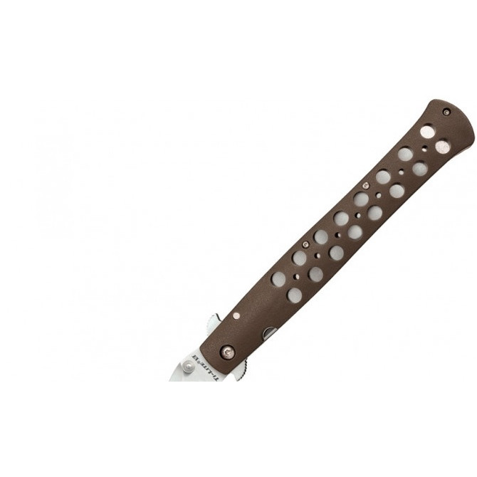 La corporación estadounidense Cold Steel ha desarrollado uno de los mejores bloqueos del mercado, ya que ha conseguido combinar en este modelo el cierre clásico Liner Lock con una tecnología de seguro Tri-Ad® creada por la propia firma.