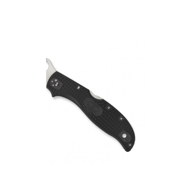Además, incorpora un gran filo serrado, lo que permite realizar cortes por fricción en diferentes materiales y texturas. Incorpora el agujero de apertura a una mano, patentado por Spyderco, para que sea más sencillo abrir la hoja de esta navaja.