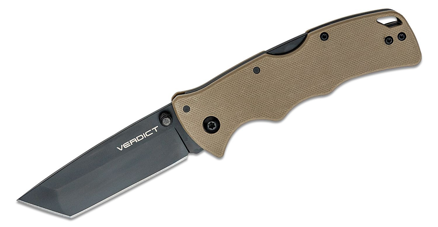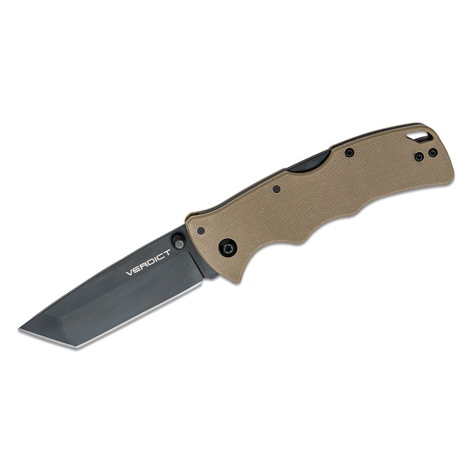 Este modelo de navaja pertenece a la serie de productos Verdict del prestigioso fabricante americano de cuchillería Cold Steel. Entre las características principales de este tipo de navaja se encuentra la hoja de acero AUS-10A uno de los aceros más modernos de gran dureza y cuyo origen es japonés.