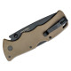 El sistema de seguridad incorporado en esta Verdict Tanto FDE es el sistema de bloqueo de hoja: Tri Ad Lock. Este sistema está desarrollado única y exclusivamente por Cold Steel, y consiste en un conjunto de engranajes internos que no requieren mantenimiento y que permiten bloquear la hoja para trabajar bajo todo tipo de presiones.