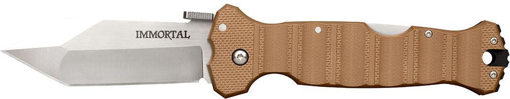 5" (12.7cm) closed. 4" (10.16cm) satin finish CTS-XHP stainless blade. Tan G10 handle. Thumb disk. Lanyard hole. Pocket clip. This Cold Steel item is from Lynn Thompson?s personal collection and comes with a Certificate of Authenticity signed by Lynn Thompson. Boxed.