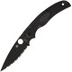 Spyderco saca otra versión del modelo Native Chief, ahora con la hoja negra serrada, con acero inoxidable CTS-BD1. La primera versión de esta navaja se lanzó al mercado en 1997 y a lo largo de estos años se han ido creando nuevos acabados. Las cachas son de FRN en color negro y además incluye bloqueo de hoja Back Lock, pinza de bolsillo y agujero para cordón fiador.