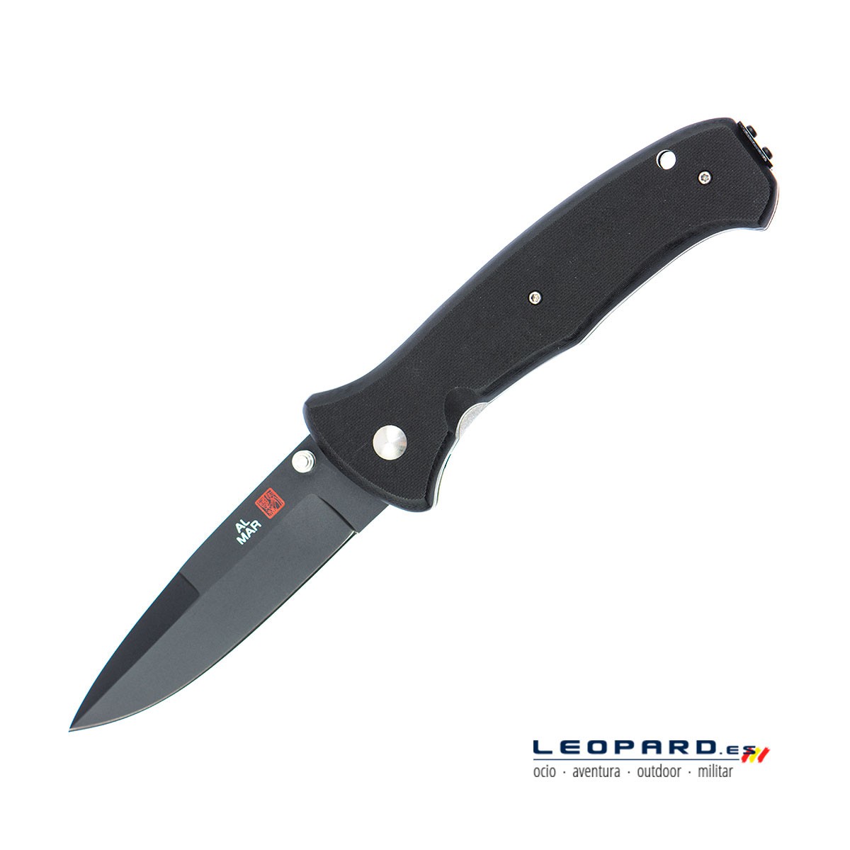 AMS2KB NAVAJA AL MAR SERE 2000 LINERLOCK BLACK FINISH Al Mar Sere 2000. 4 7/8" closed linerlock. Satin finish VG-10 stainless false edge spear point blade with thumb stud. Textured G-10 handles with reversible pocket clip. Lanyard hole. Weighs 6 oz. Country of Origin: JAPAN