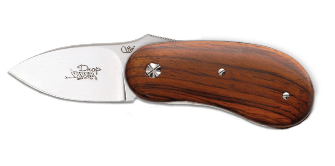 Navaja de bolsillo fabricada en italia con acero Sandvik 12C27 acabado satinado con cachas en madera de cocobolo, bloqueo liner Lock. Incluye funda de piel.