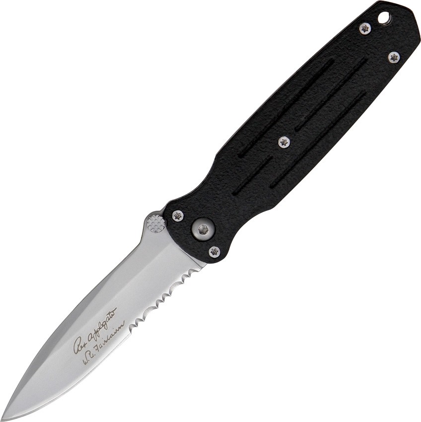 Navaja Gerber diseñada y firmada por Applegate-Fairbairn. Hoja mixta fabricada en acero 440A. Cachas fabricadas en FRN ligero (de fibra de vidrio reforzado de nylon). Incluye clip para portar en el cinturón y agujero para cordón fiador.