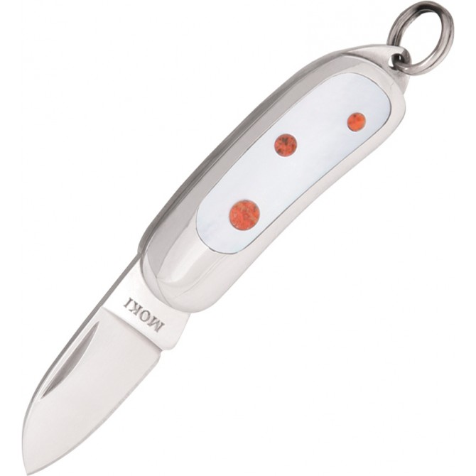 Concretamente, el 8Cr14MoV / AUS-6 contiene un 0,70-0,80% de carbono, menos de un 1% de manganeso, 13-14% de cromo, 0,20% de níquel, 0,10-0,20% de vanadio y 0,10-0,20% de molibdeno, con una dureza de 58-59 HRC. La combinación entre dureza, sencillez y elegancia permiten a Moki crear navajas de gran calidad.