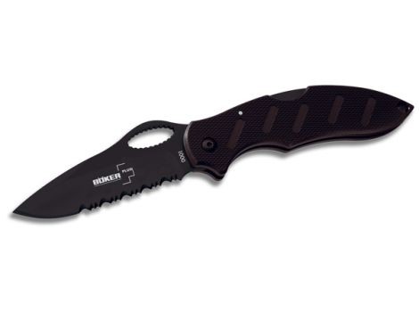 This new tactical piece from Boker Plus can handle anything. Zytel handle with a lanyard hole and reversible pocket clip. The partially serrated blade is made of ultra sturdy AUS-8 steel, black-coated. Safety backlock system. Blade length: 3". Overall length: 7 1/8". Weight: 3 oz.