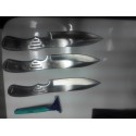 "El set de cuchillos de acero inoxidable es ideal para ser lanzado con media vuelta. Con una buena tecnica se clavaran el 100% de las veces ya sea con la punta o con el pico de lo hoja tipo tanto."