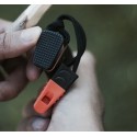 "Por otro lado y como otra característica se trata de este pequeño silbato integrado al final del cordón fiador que nos hará al mismo tiempo doble servicio. "