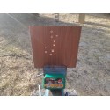 "Varios impactos de un Diábolo rocket en un tablero de 2 cm a una distancia de 10 metros con una carabina de gamo wisper x."