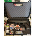 "Viene con el maletin y una lata de 250 plomos Gamo Pistol Cup(no son los más adecuados para este arma). Pero el maletin es un detalle que se agradece. Tras el acolchado puedes poner la documentación. Algo que también se agradece si acostumbras a ir al campo de tiro ya que nunca olvidarás la documentación. "