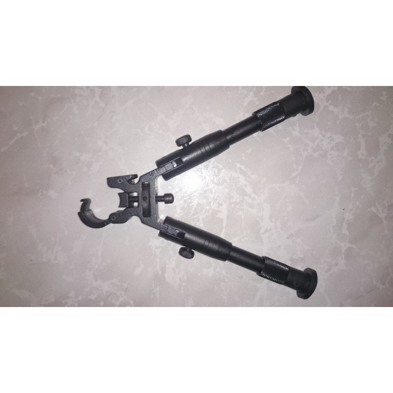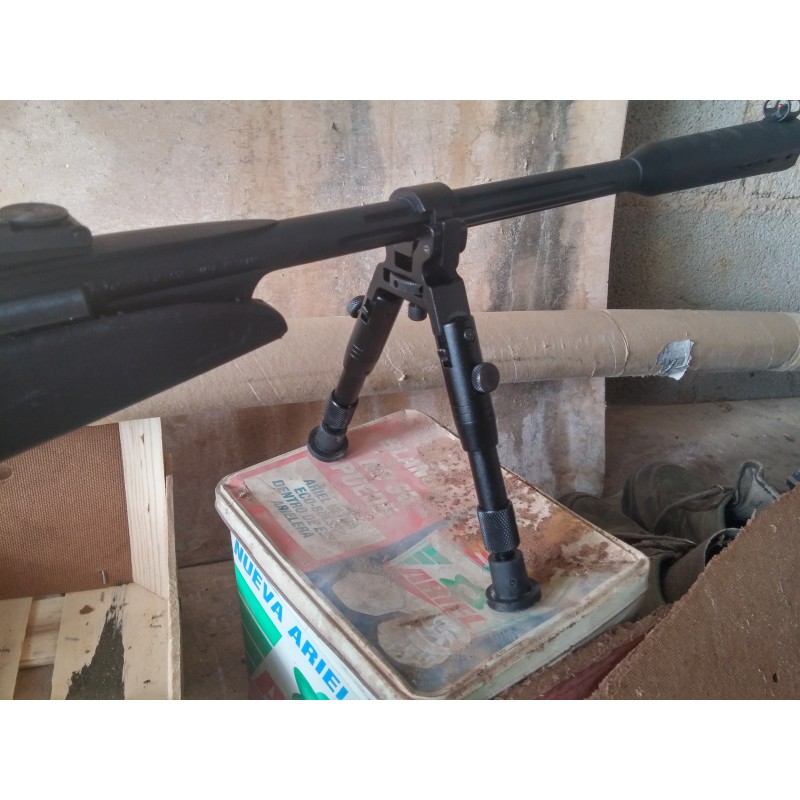 "Excelente bípode para utilizar con todo tipo de carabinas de aire comprimido. Se ajusta perfectamente a cualquier diámetro de cañón, patas regulables en altura y plegables una vez montado. Acabado en color negro, muy buena relación calidad precio."