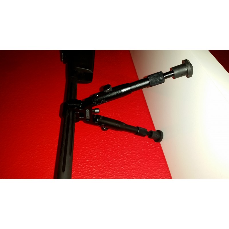 "como podéis ver en la fotografía este bipode se pliega y tiene unos muelles en cada para para acoplarse al terreno."