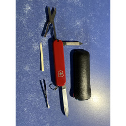 "Navaja victorinox modelo Ambassador Color rojo. Trae arandela, navaja, lima, tijeras, palillo de dientes y pinzas. Tamaño compacto y muy manejable."