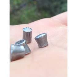 "Podemos ver un balín nuevo y otro disparado desde 20 m a una chapa gruesa.(Con 24 j) Es impresionante la espansión de este balín. Recomiendo si quieres partir el blanco por la mitad!! "