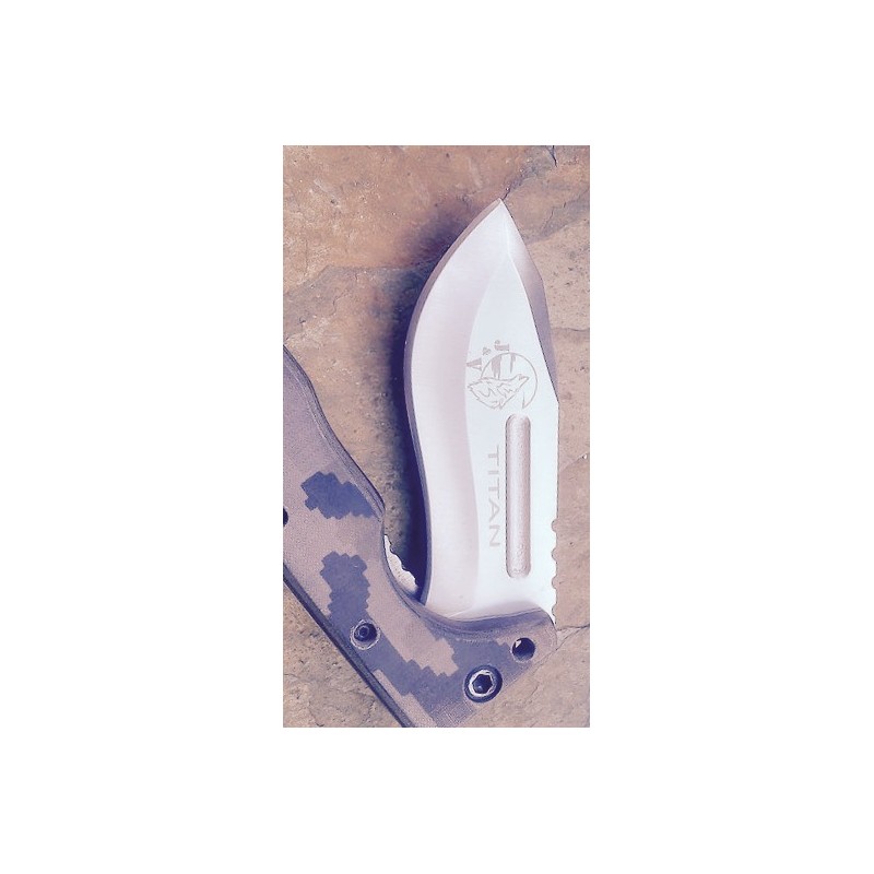 "Casi con sus 17 centímetros de empuñadura de micarta acabados digitales y rompedor al final de la misma. "