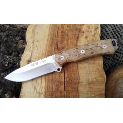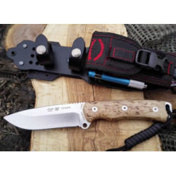 "El cuchillo esta diseñado por Manuel de la Torre, que, además de maestro cuchillero, es experto en supervivencia, para mi, un acierto tener apoyos tan grandes como este para obtener un buen resultado"
