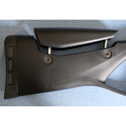 "Detalle de la culata: es ajustable en altura para poder ajustarse al gusto del tirador, la cantonera esta rematada en goma para amortiguar el retroceso del arma"