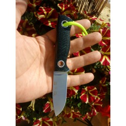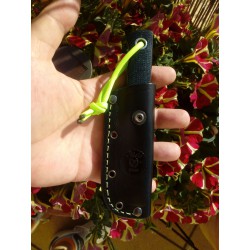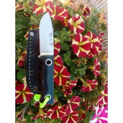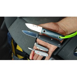 "Los materiales con los que esta construído,el tamaño compacto junto con la forma del mango hacen de el un pequeño gran cuchillo muy recomendable. La funda de dos posiciones,para el cinto y el cuello hacen de el un conjunto ideal y versátil."