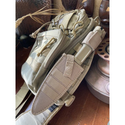 "La funda de nilón con SISTEMA MOLLE, está bien hecha y, para mí, acertada. Cierra con fuerza no dejando escapar al cuchillo ni bocabajo. Para el cinto prefiero la funda Kydex Teck-lock, pero en este caso, el transporte del Shrapnel One en el exterior de una Maxpedition es ideal. "