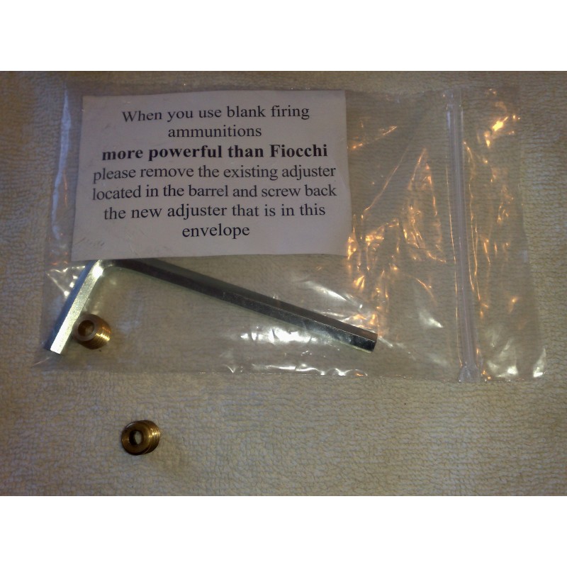"Eurico (Trofa) Cliente de www.leopard.es : Viene dentro del maletin, como se puede ver en este papel dentro de la bolsa de plástico que dice : Si tu vas á utilizar munición más potente que Fiocchi quitar el tornillo que se encuentra dentro del cañón y poner lo que hay dentro de la bolsa. (Yo lo quite y no meti nada obviamente)."