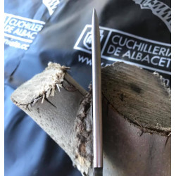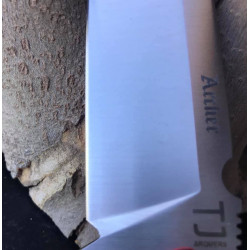 "La hoja es muy gruesa, sirve para cualquier uso ya que es muy contundente pero a la vez tiene un filo como si fuera una navaja, la punta tiene muy buena penetración para la anchura que tiene"