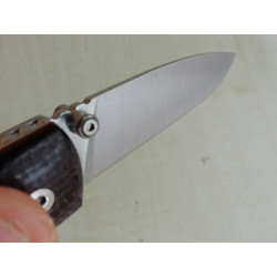 "Aquí se puede ver que en un lateral de la hoja ponen los datos, nombre del modelo y material de la hoja y nombre del fabricante. El otro lado no tiene nada grabado. La hoja esta acabada satinada y trae un buen filo de fábrica. Comentar también que bloqueo linner lock es muy seguro y fácil de desbloquear. "