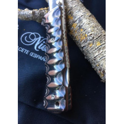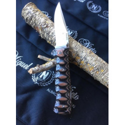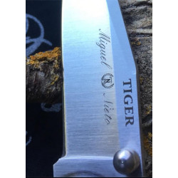 "El acero es vanadio, de muy buena calidad, con este diseño de hoja tiene un gran corte y poder de penetración increíble, la hoja recuerda mucho a la Nieto Comando, siendo esta la predecesora"