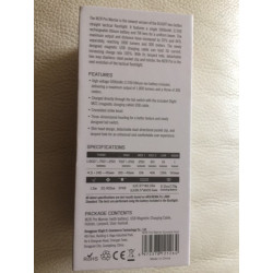 "La caja tiene indicaciones técnicas acerca de la duración de los distintos modos en cuanto al uso y agotamiento de la batería, solamente en inglés. En definitiva una robusta caja de las que seguramente no tiraré nunca"