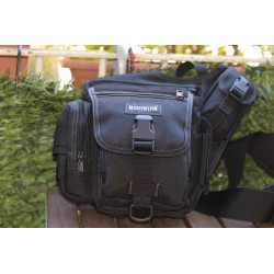 "Se trata de una bandolera muy cómoda, con una caída estupenda y acolchada por su parte posterior, haciendo que se adapte perfectamente al contorno de la cintura. Desde el punto de vista funcional, está dotada con varios bolsillos tanto interiores como exteriores para llevar perfectamente todos nuestros enseres y accesorios. El material, es nylon-cordura de primera, lo que hace que sea bastante rígido y un poco difícil de dominar. Os aconsejo que en el momento que la recibáis, si no vais a utilizar todos los bolsillos , sobre todo los exteriores, los rellenéis de cartón y o papel a presión , para darle la forma."