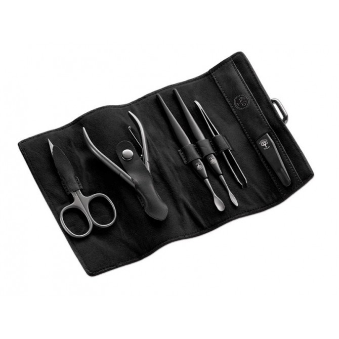 Los cinco instrumentos para el cuidado de su mano vienen insertados en una funda de piel de vaca de primera calidad, que asegurará sus herramientas de manicura en todo momento. Además, incorpora el logotipo de la colección Böker Arbolito, serie a la que pertenece este fantástico estuche.
