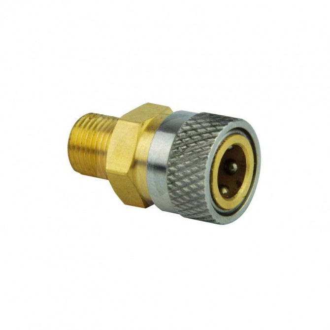 Conector rápido hembra - 1/8" BSPM Macho. Presión máxima de funcionamiento: 300 Bar.