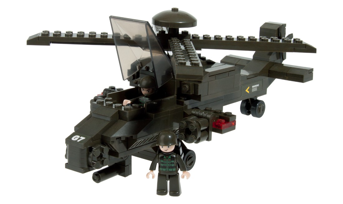 Este fantástico pack incorpora 199 piezas que conforman un helicóptero tipo Hind con todo tipo de detalle, ya que incluye cristalera, hélices delantera y trasera e incluso detalle de motor en color rojo. Así mismo, incluye un militar a bordo simulando un piloto militar y otro soldado en tierra.