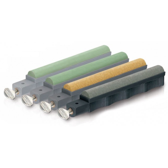 Cuatro piezas: Grano 120, 280, 600 y 1000. Se utiliza para afilar cuchillas de curvados hacia dentro, como del karambit, kukri, guadaña y hojas de estilo Hawkbill.