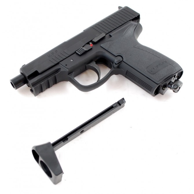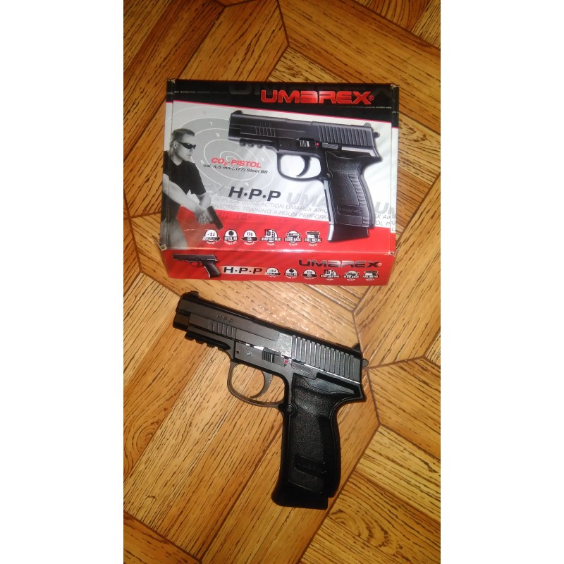 La Umarex HPP se alimenta mediante una bombona de Co2 de 12 gramos, que se instala en el interior de la culata del arma y que acciona el arma permitiendo una velocidad de salida de la bola de 130 m/s. Además, gracias a su cañón liso de acero inoxidable el usuario disfrutará de gran precisión en cada disparo.