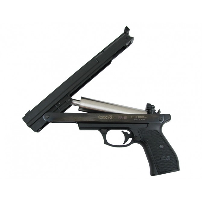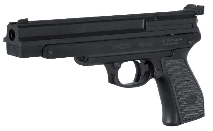 La Gamo PR-45 es una pistola polivalente y versátil, ya que incorpora miras abiertas regulables en altura y deriva, por lo que la visualización de la diana u objetivo móvil será muy correcta. Además, presenta un diseño picado en empuñadura para reducción de fatiga en sesiones largas.