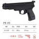 Los desarrolladores españoles de Gamo han instalado en la PR-45 un avanzado sistema interno de 3,5 Julios de potencia, lo que permitirá una velocidad de salida de 120 m/s. Además, lleva un barril de acero estriado e inoxidable, que mejorará al máximo la precisión de cada disparo.